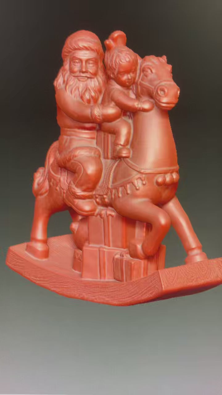 圣诞老人摇马的3D打印模型文件,文件格式为STL,尺寸规格:90.196*45.398*78.345cm。适用于FDM打印机或树脂打印机。