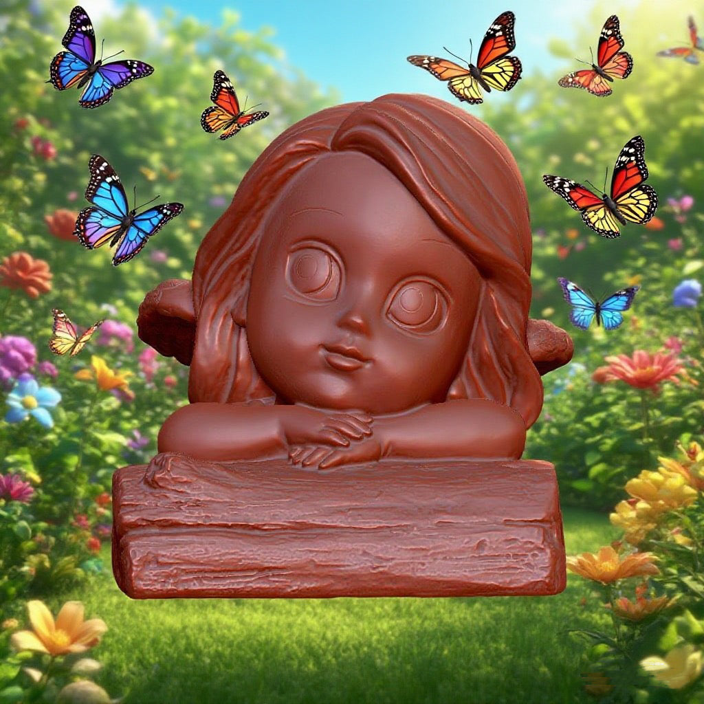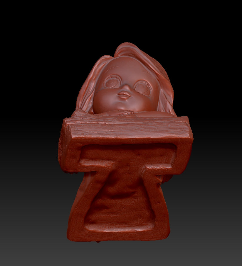 Cute girl crouching on wood 3D printed model file, the file format is STL, Size specifications of product 3D files:33.381*24.832*40.922cm. Suitable for FDM printers or resin printers.