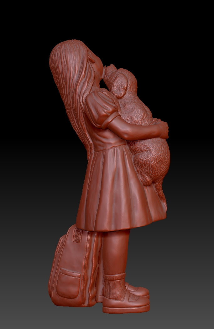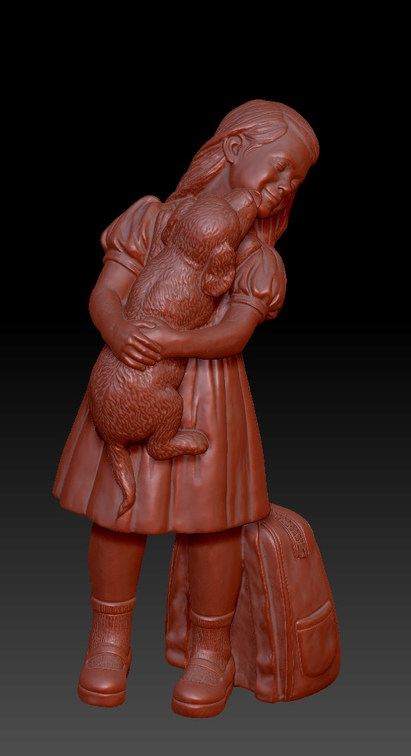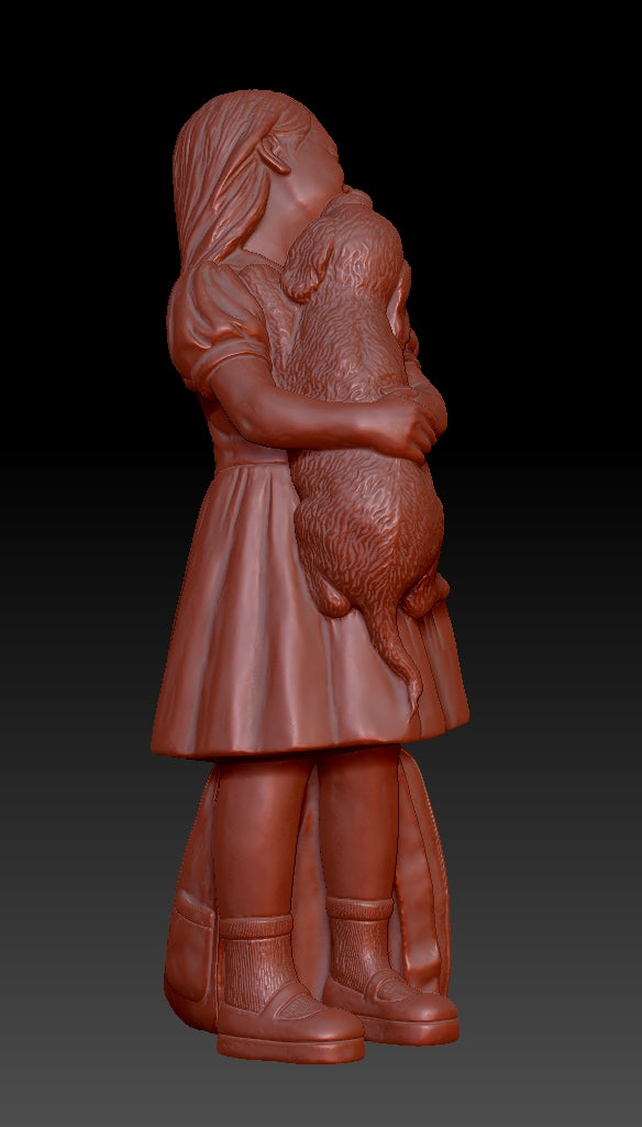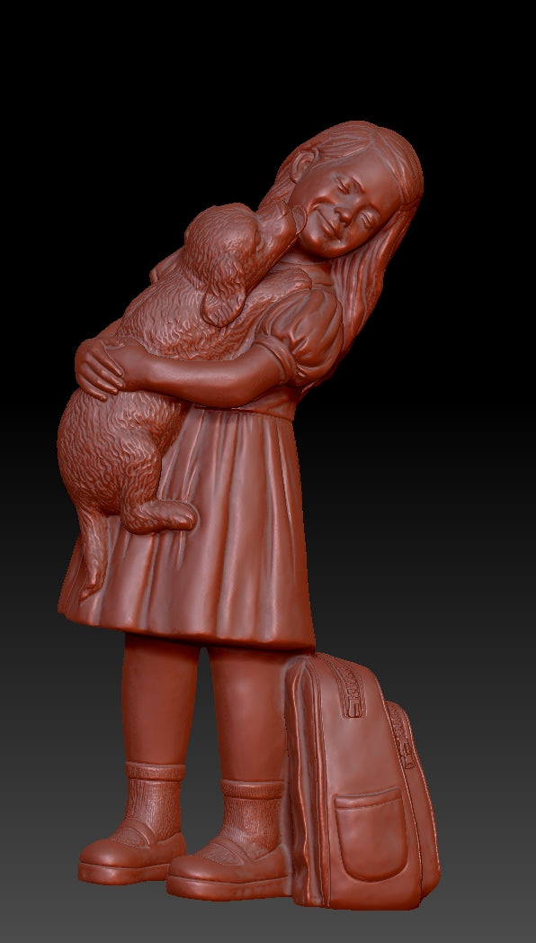 Girl and Cute Dog 3D printed model file, the file format is STL, Size specifications of product 3D files:68.077*36.129*23.520cm. Suitable for FDM printers or resin printers.