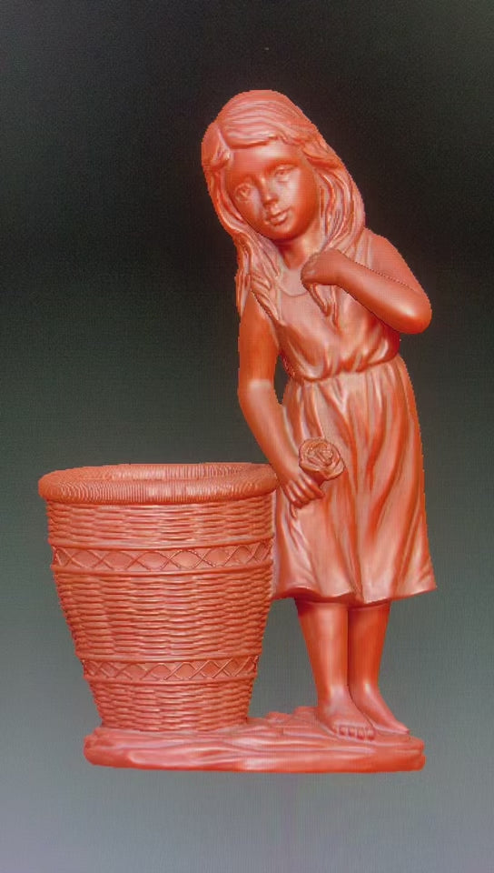 Girl with Flower Basket 3D printed model file, the file format is STL, Size specifications of product 3D files:47.589*27.931*19.653cm. Suitable for FDM printers or resin printers.
