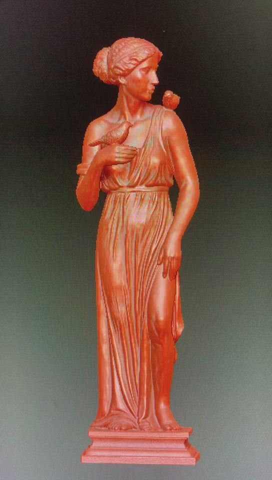 This goddess sculpture model created by 3D files is a blessing for details! Every strand of the character's hair, the natural drooping folds of the robe, and even the bird's wings are accurately captured and perfectly restored, as if an artistic masterpiece that spans time and space is presented to you.